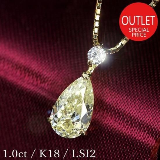 K18¥¤¥¨¥í¡¼¥´¡¼¥ë¥É¡¡Å·Á³¥À¥¤¥ä¥â¥ó¥É1.004ct¡¡¥Ú¥¢¥·¥§¥¤¥×¥«¥Ã¥È¥Í¥Ã¥¯¥ì¥¹¡¡ I/SI2 ´ÕÄê½ñÉÕ